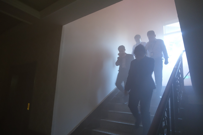 下午15:30分,隨著警報響起,各樓層疏散組長迅速行動,及時引導各層員工沿逃生疏散路線有序撤離。全體員工依照預案要求,用濕毛巾捂住口鼻快速前進,僅用了5分鐘即安全撤離到公司大樓警戒線外的安全地帶。隨即,各樓層疏散組長清點人數(shù)后向演練總指揮報告疏散情況,整個應急疏散過程,秩序良好,反應迅速。