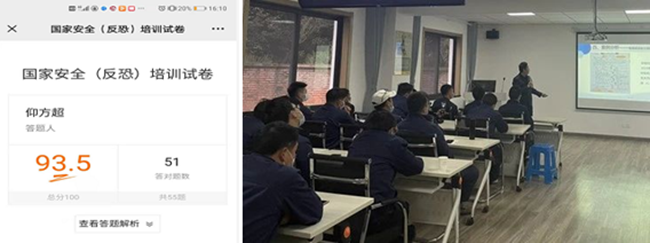 公司以部門、組別為單位,組織全體員工認(rèn)真學(xué)習(xí)《反恐怖主義法》《刑法》《國(guó)家安全法》等相關(guān)法律法規(guī),并開展線上反恐理論知識(shí)答題考核,進(jìn)一步鞏固提升全員安全反恐防爆知識(shí)和能力。