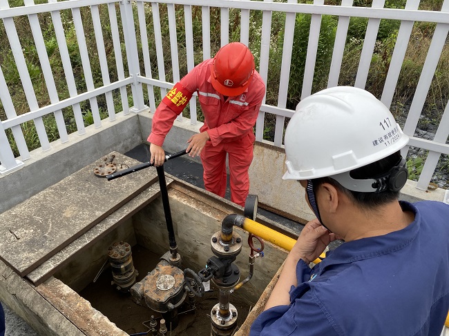 “山口高壓停輸作業(yè)區(qū)域燃氣探漏車第三次檢測結果無異常,可開啟管線4#閥門”,伴隨著來自安慶港華調度中心的指令,高壓管線與北部新城場站連接的最后一道閥門緩緩開啟,安慶高新區(qū)山口片區(qū)高壓燃氣輸配工程高壓管線順利完成接駁。
