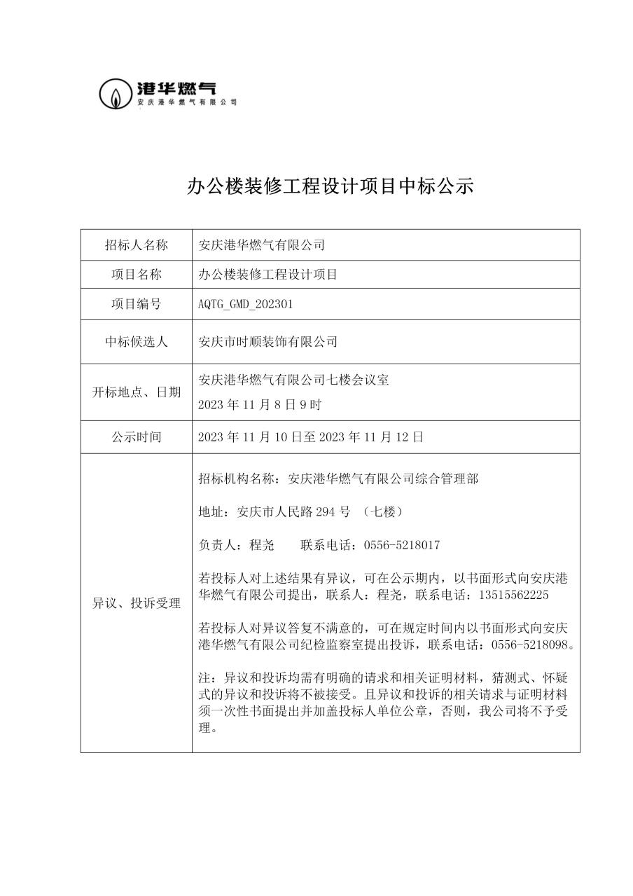 辦公樓裝修工程設(shè)計項目中標(biāo)公示