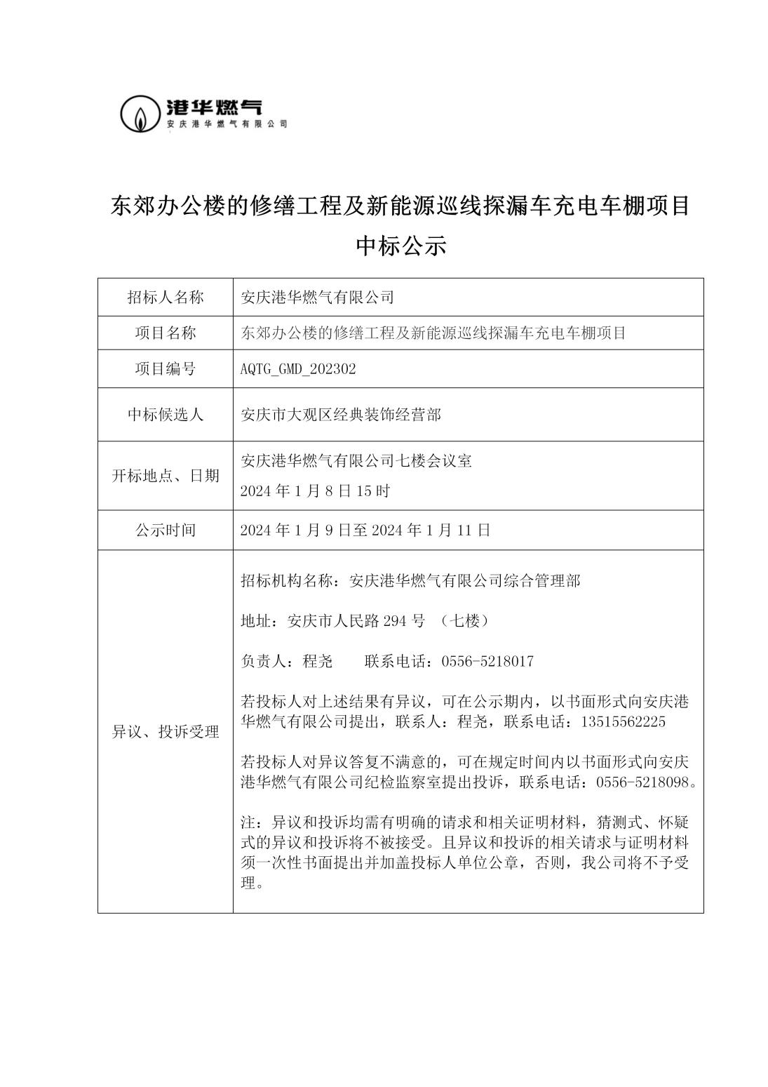 東郊辦公樓的修繕工程及新能源巡線探漏車(chē)充電車(chē)棚項(xiàng)目中標(biāo)公示