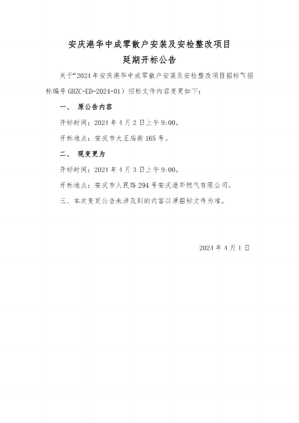 安慶港華中成零散戶安裝及安檢整改項目延期開標(biāo)公告