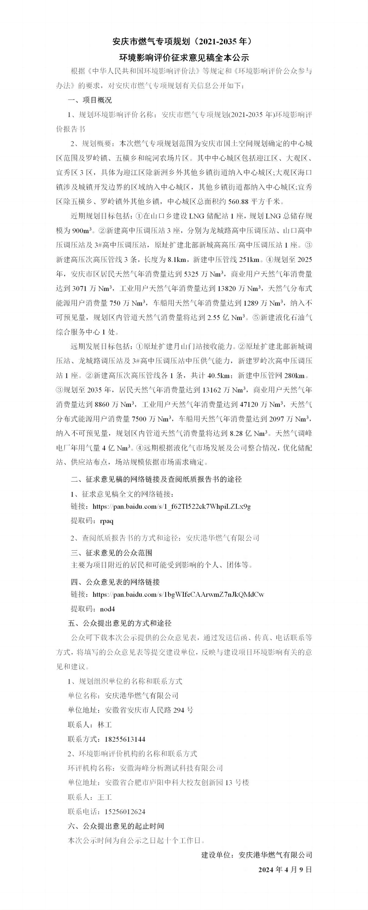 安慶市燃?xì)鈱?zhuān)項(xiàng)規(guī)劃(2021-2035年)環(huán)境影響評(píng)價(jià)征求意見(jiàn)稿全本公示