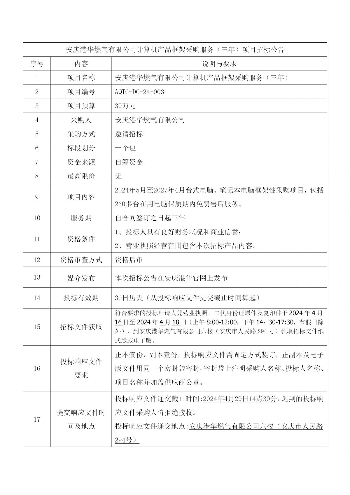 安慶港華燃?xì)庥邢薰居嬎銠C(jī)產(chǎn)品框架采購服務(wù)(三年)項目招標(biāo)公告